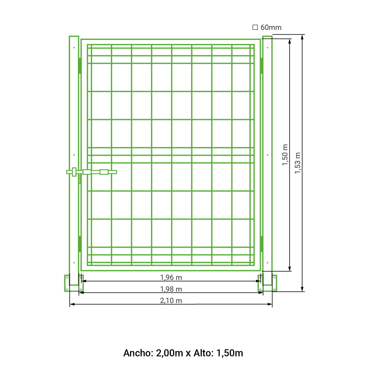 Puerta abatible 1 hoja hércules galvanizada 1,50 metros alto x 2,00 metros ancho