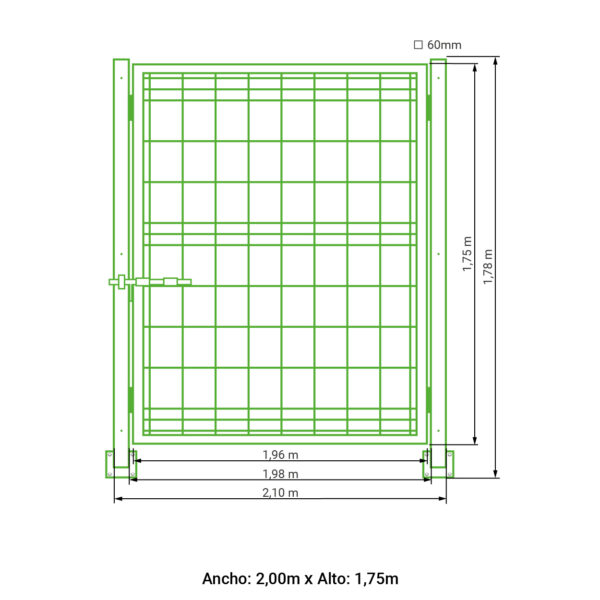 Puerta abatible 1 hoja hércules verde 1,75 metros alto x 2,00 metros ancho